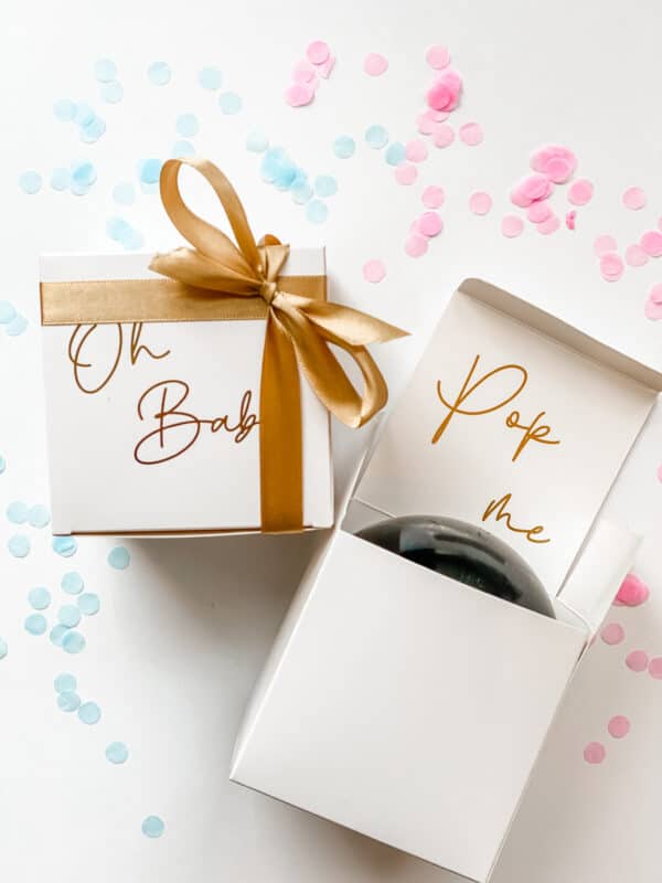 Wat een leuke persoonlijke optie is zijn onze mini ballon boxen of kraskaart setjes! In de kraskaart setjes zit een kraskaart van het juiste geslacht en een blanco kaartje waar ruimte is voor een persoonlijke boodschap. Dit samen zit in een transparant zakje samen met roze en blauwe confetti. De mini ballon boxen zijn kant-en-klaar, het doosje bevat een opgeblazen ballon met daarin de juiste kleur confetti. Verstuur deze producten naar jullie dierbaren en vraag ze om het moment van open krassen of kapot prikken te filmen, het eindresultaat hiervan is super gaaf! Deze twee producten zijn trouwens ook te bestellen onder de optie ‘ik laat me verrassen’. Je kunt natuurlijk ook een van onze andere producten opsturen naar jullie dierbaren, wij kunnen er ook een persoonlijke boodschap voor hun bijdoen (laat dit achter bij de bestelnotities).