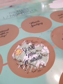 Das Poster hat ein A1-Format (passt genau in einen Ikea-Rahmen!) und hat eine luxuriöse Oberfläche mit goldenen Details. Darüber hinaus kommt es in einer stabilen Röhre, die Sie das Poster sicher zu halten erlaubt. Auf dem Poster sind 26 goldene Meilensteine abgebildet, nach dem Aufkratzen der Meilensteine kann das Datum hinzugefügt werden. Sie können auch die Größe und das Gewicht Ihres Kindes aufzeichnen und verfolgen, indem Sie das Diagramm aufkratzen.