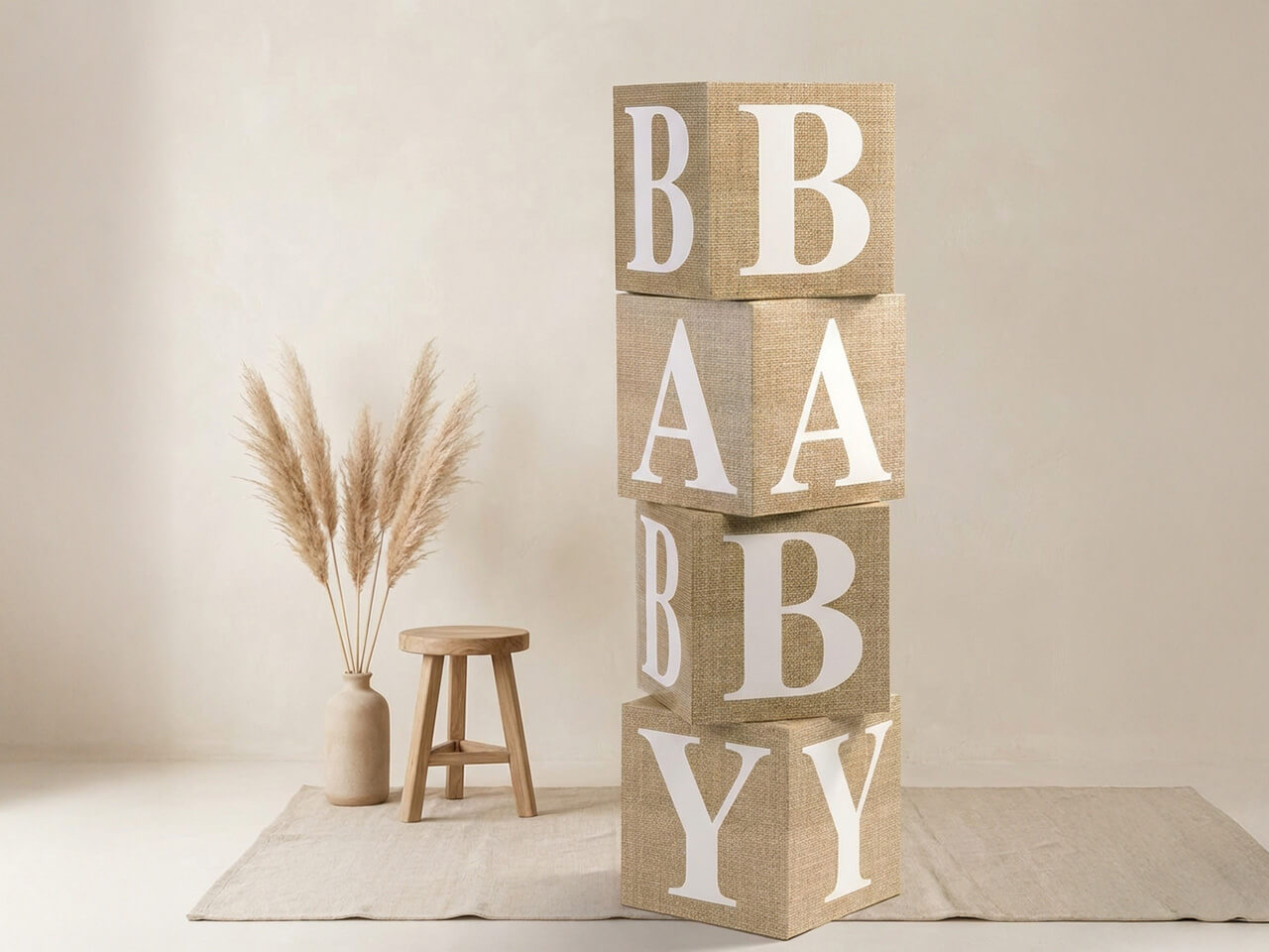 Je plant een babyshower en wilt dat alles perfect is. Dat snap ik helemaal. Deze BABY blokken geven je die zekerheid dat je decoratie er gewoon goed uitziet, zonder dat je er zorgen over hoeft te maken. De natuurlijke jute uitstraling brengt direct warmte in de ruimte, terwijl de elegante serif-letters zorgen voor die strakke, moderne touch waar iedereen van houdt.