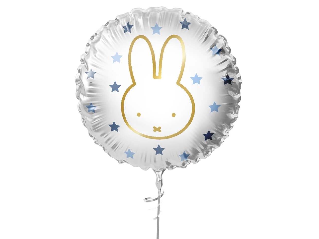 Deze leuke blauwe Nijntje folie ballon met blauwe sterretjes en gouden Nijntje print past in ieder thema.