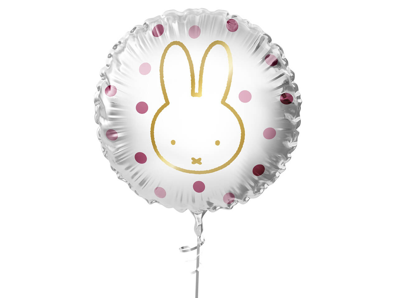 Deze leuke roze Nijntje folie ballon met roze bolletjes en gouden Nijntje print past in ieder thema.