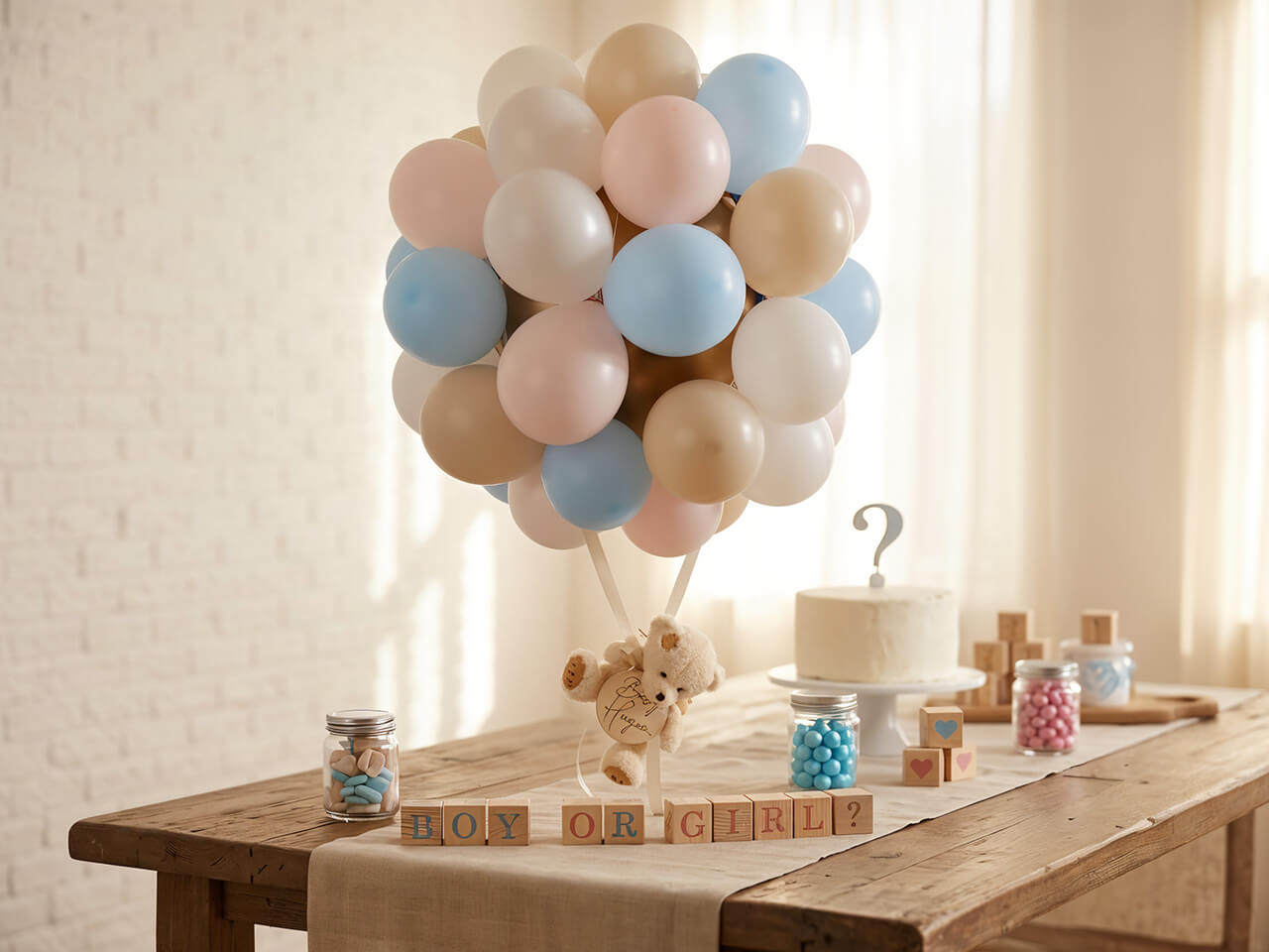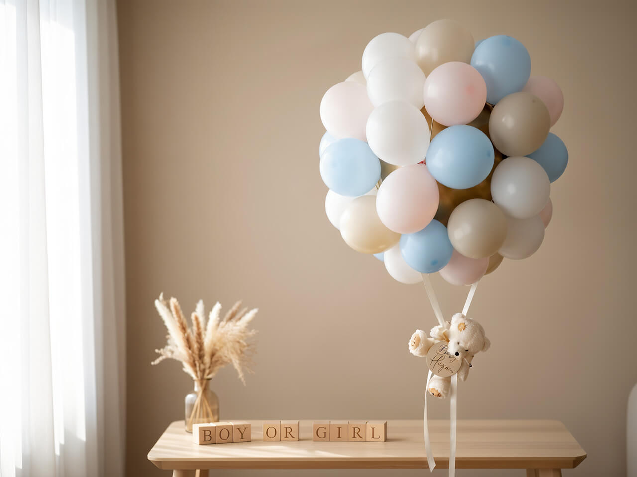 Of je nu een babyshower organiseert, het kraambezoek verwacht of het geslacht van je kindje op een verrassende manier wilt onthullen - dit ballonnenboeket speelt altijd de hoofdrol. De neutrale kleuren passen bij elke aankleding, terwijl het formaat meteen duidelijk maakt: hier gebeurt iets bijzonders.